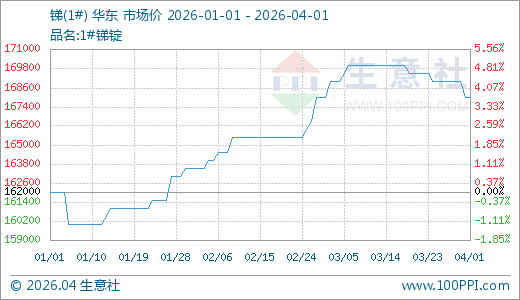 04月01日锑168000.00元/吨 90天上涨3.70%